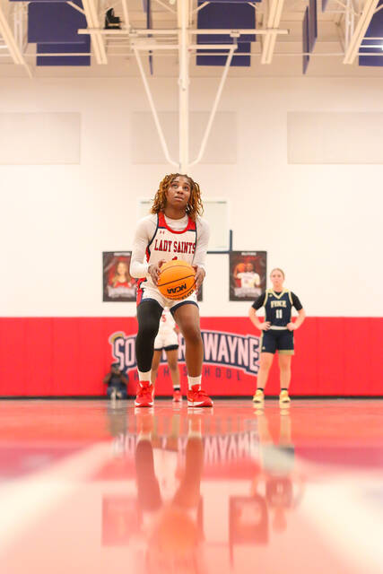 Southern Wayne’s No. 1 Azariah Jordan lining up for some free throw shoots where she went 1 of 1 from the line.