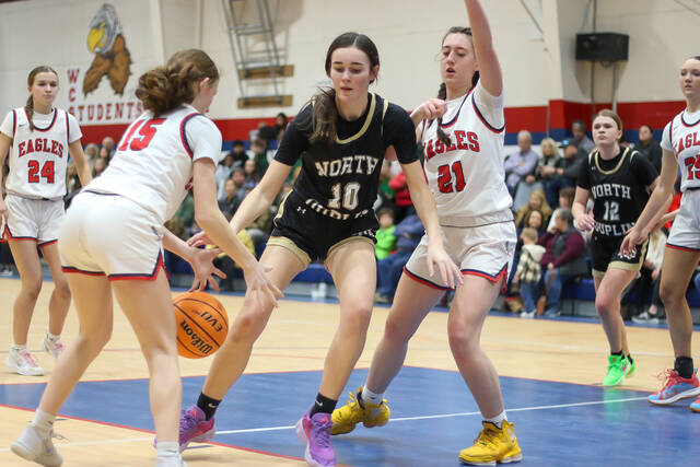 A rebound and basket by No. 3 Abby Rose extended the lead before the Eagles tried to spark a comeback with a jump shot from No. 25 AJ Verme After a Rebels timeout, North Duplin briefly struggled to score, but the Eagles couldn’t capitalize.