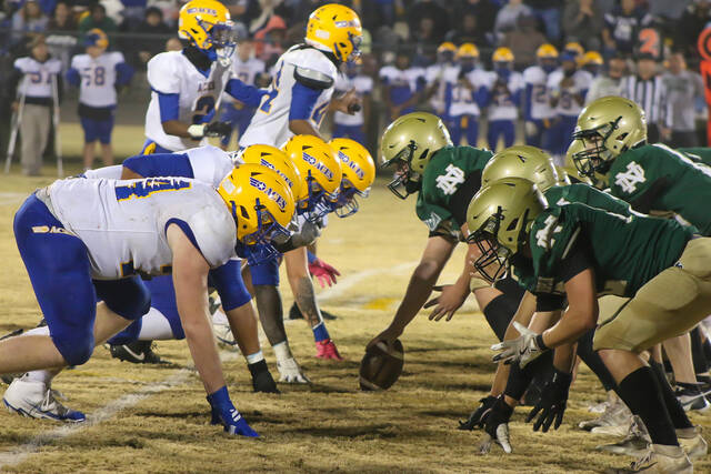 The intensity builds as the North Duplin Rebels and Edenton Holmes Aces line up for the first drive of the half. (Kareem Brown|mountolivetribune.com)